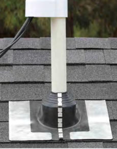 DEKTITE DSR is a great solution for flashing over or around penetrations through a shingle roof. Available in black and made from proprietary polymer materials to be fully compatible with asphalt shingles. Easily slide down the pipe without cutting, or cut along the zipper & use the clips supplied. The aluminum flange nails securely down to the roof.